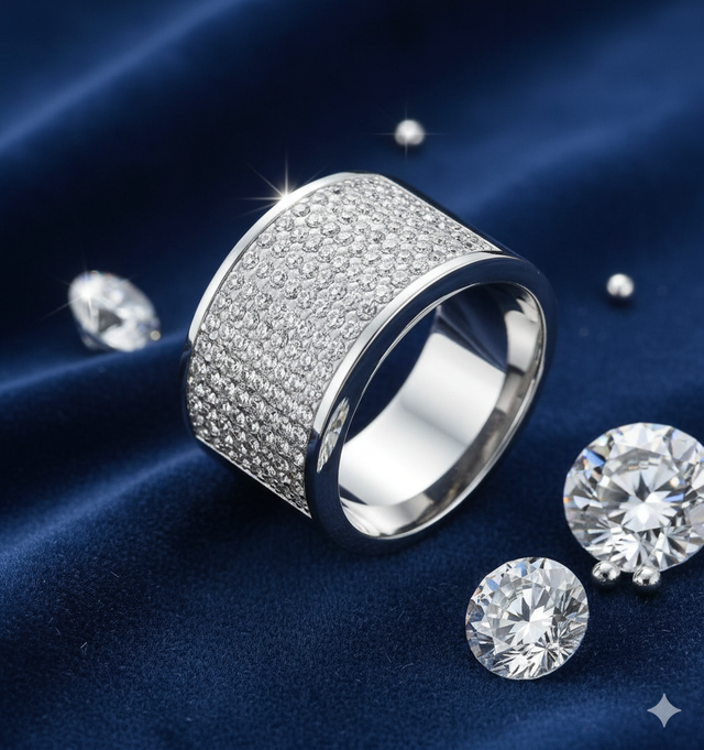 Bague en acier inoxydable de qualité à corps large ornée de 128 cristaux blanc Preciosa