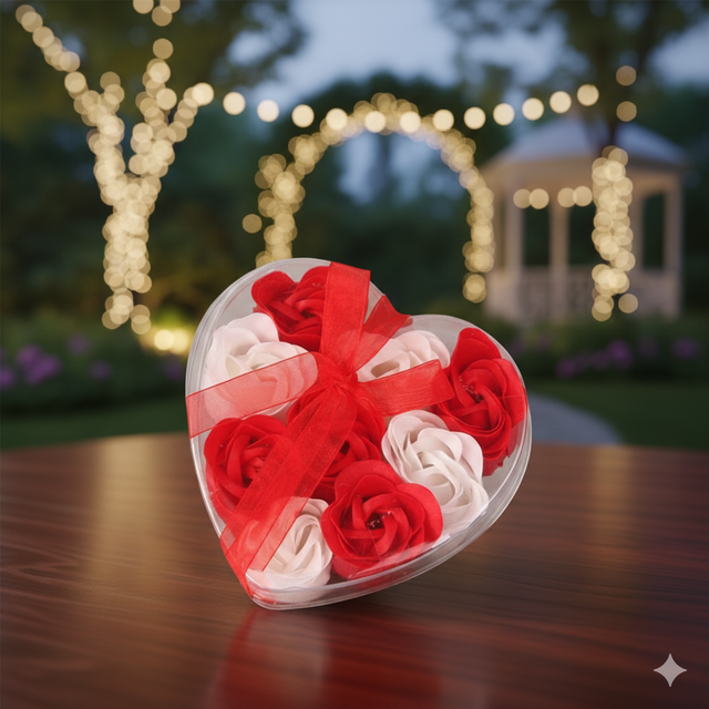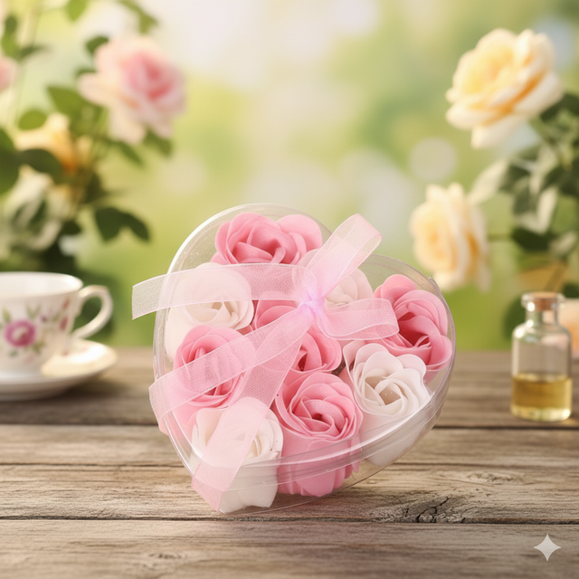 Coeur avec 9 roses pétales de savon