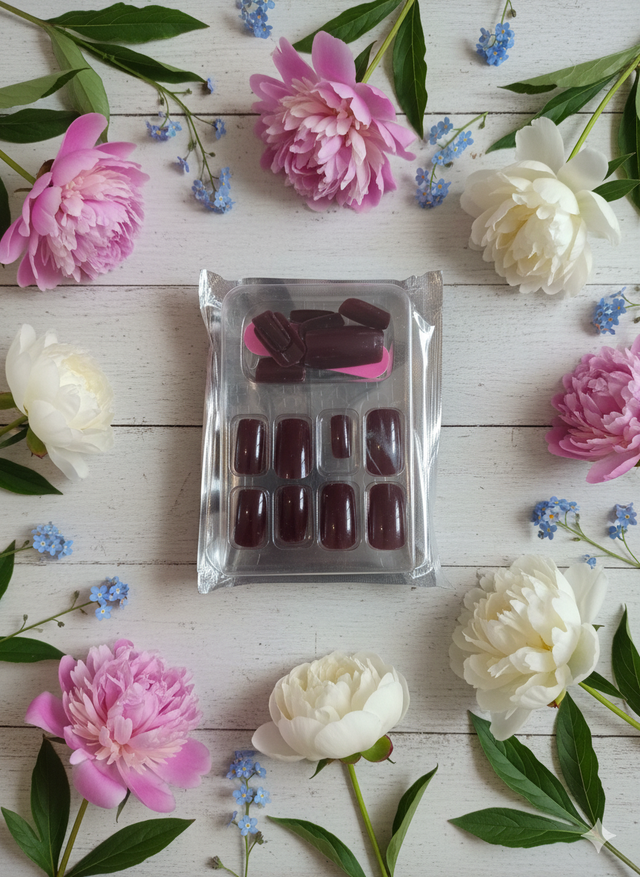 Faux ongles à coller bordeaux